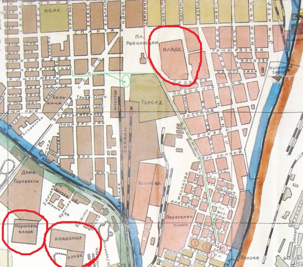 Но город стремительно разрастался. И его границы быстро достигли кладбищенской стены, а затем поглотили и всё кладбище. И, чтобы понять, какие пределы занимало Казанско-Богородицкое кладбище, лучше посмотреть на карту 1930-ых годов. Очевидно, что это была территория от нынешнего магазина «Ритм» до театра «Манекен» (кинотеатр имени Пушкина).