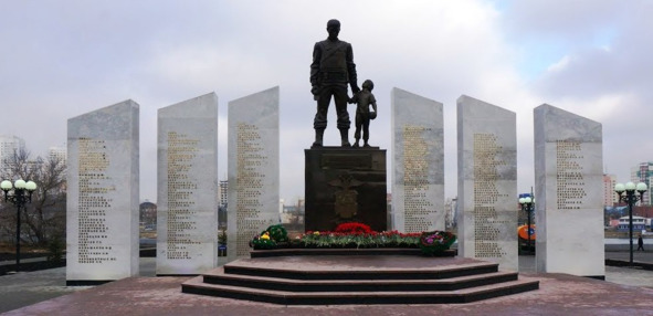 Чтобы понять, о чём идёт речь, следует рассматривать его сбоку, встав спиной к Аллее Славы. История этого комплекса весьма интересная. Да и само место не простое. Вот послушайте.