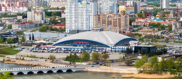 Уникальность его в том, что эта железобетонная конструкция на самом деле очень внушительных размеров (102 на 102 метра) не имеет внутри колонн, поддерживающих эту «оболочку»! Вся конструкция держится только на четырёх угловых опорах. А они, в свою очередь, размещены на специальных катках, которые могут двигаться. Таким образом, мощный купол Челябинского торгового центра – это «дышащая» конструкция! А «дышит» она от перепада температур. Ведь в Челябинске температура зимой достигает – 40°, а летом +40°.