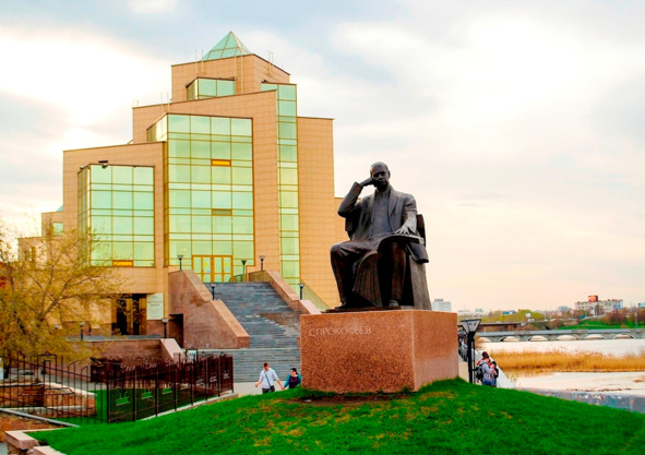 Теперь на этом месте скульптура Сергея Прокофьева. Но не случайно. Напротив него, через дорогу, возвышается здание Челябинского концертного зала имени Прокофьева.