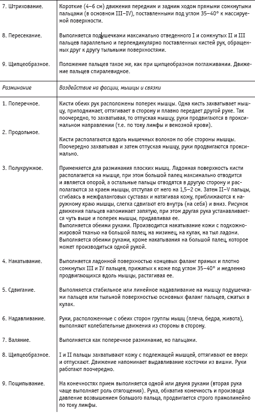 * Примечание. Подробное описание техники выполнения массажных приемов представлено в книге И.Н. Макаровой и В.В. Филиной «Лечебный классический массаж», 2006.