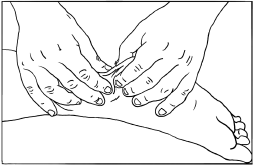 Рис. 5.21. Щипцеобразное разминание ахиллова сухожилия.