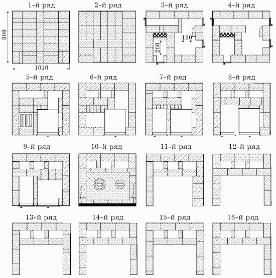 12–16-й ряды – формирование варочной камеры и трех вертикальных газоходов в соответствии с порядовкой.