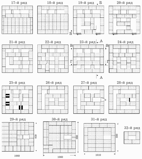 30-й ряд – второй ряд перекрытия с увеличением длины и ширины кладки еще на 50 мм.
