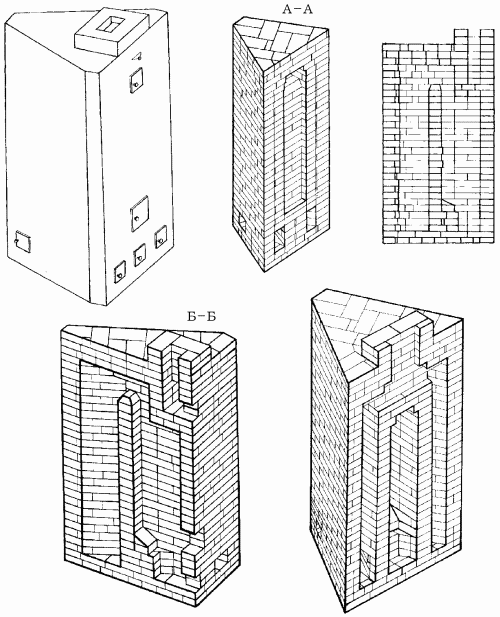 Рис. 91. Треугольная отопительная печь.