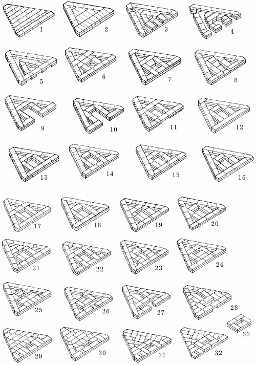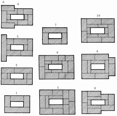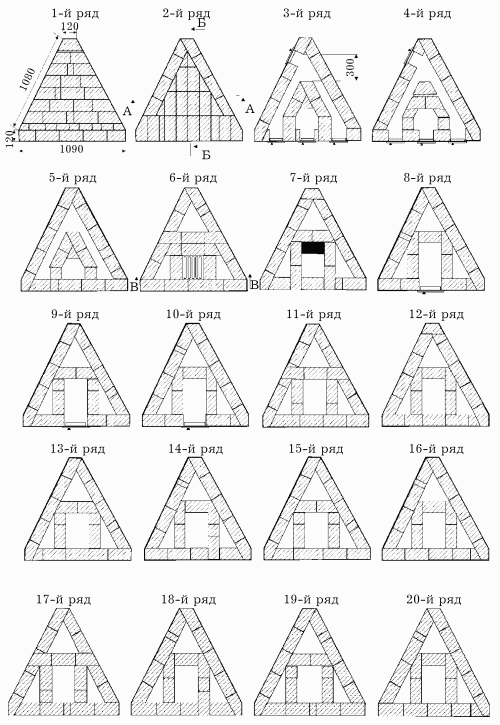 Рис. 92. Последовательность кладки треугольной печи.