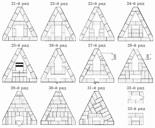 21–28-й ряды – формирование газоходов в соответствии с порядовкой. На 27-м ряду следует установить дымовую задвижку.