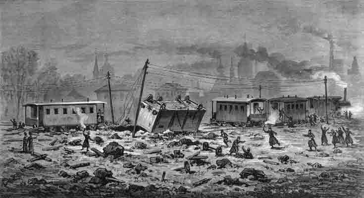 Взрыв свитского поезда под Москвой, 19 ноября (1 декабря) 1879 года. Взорвался вагон с фруктами, никто не пострадал. Фото из открытых источников
