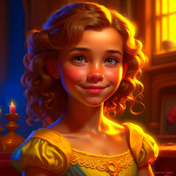 В далеком королевстве жила маленькая принцесса по имени Полина. У нее были самые красивые каштановые волосы, сиявшие на солнце, и глаза, похожие на бусинки. Принцесса Полина любила исследовать заколдованный лес возле своего замка, где жили волшебные существа.