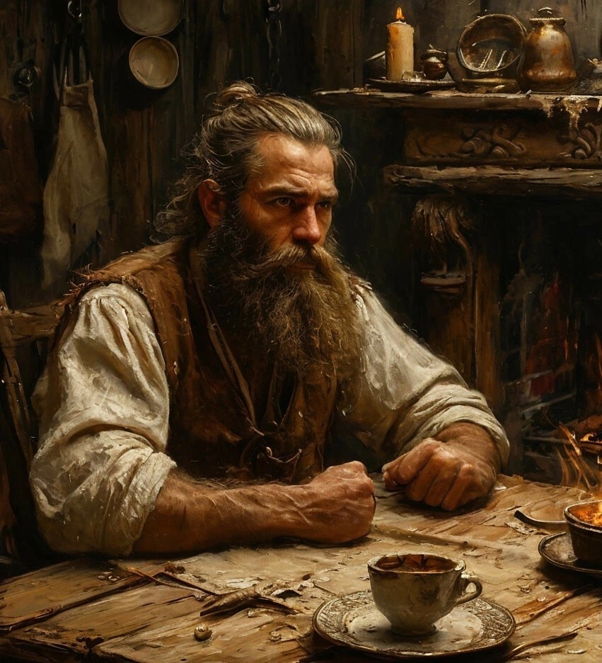Колдун не спешил с ответом. Он молча смотрел на охотника, почёсывая густую бороду. Потом встал, налил ему чая, и предложил сесть жестом руки.
