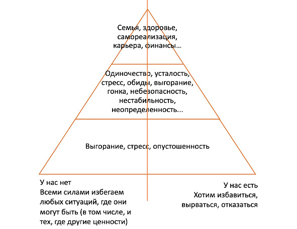 Есть ценности/состояния, к которым стремимся. А есть состояния, которых избегаем, боимся, не хотим.