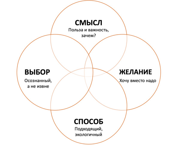 – Желание. Когда мы делаем, потому что хотим, а не потому, что надо, должны, обязаны. Действия связаны с ценностями.