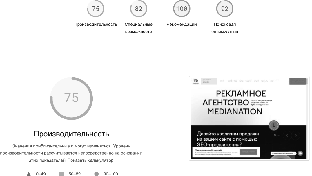 Важно помнить: при приеме проекта от разработчиков желательно периодически проверять главную и ряд других страниц сайта через сервис Google PageSpeed Insights и вкладку «Проверка мобильных страниц» в «Яндекс. Вебмастер», в идеале показатель «качество» должен стремиться к значениям выше 70–80.