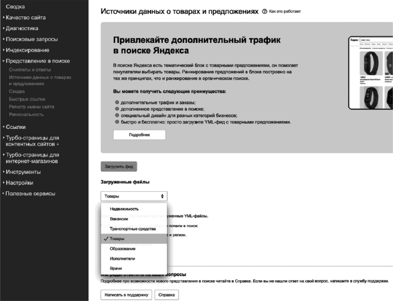 В «Яндекс. Вебмастер» вы можете передать информацию о направленности бизнеса в виде YML-файлов[15]15
