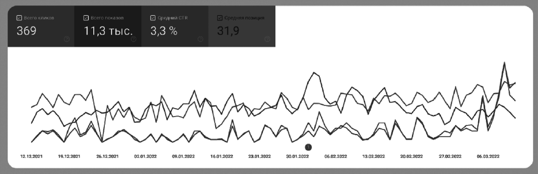 Рис. 14. Пример отчета по эффективности сайта в Google.