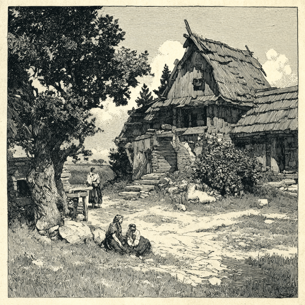 Потом оказалось, что среди нашего двора, густо заросшего кудрявой муравой, есть какое-то древнее каменное корыто, под которым можно прятаться друг от друга, разувшись и бегая белыми босыми ножками (которые нравятся даже самому себе своей белизной) по этой зеленой кудрявой мураве, сверху от солнца горячей, а ниже прохладной. А под амбарами оказались кусты белены, которой мы с Олей однажды наелись так, что нас отпаивали парным молоком: уж очень дивно звенела у нас голова, а в душе и теле было не только желанье, но и чувство полной возможности подняться на воздух и полететь куда угодно… Под амбарами же нашли мы и многочисленные гнезда крупных бархатно-черных с золотом шмелей, присутствие которых под землей мы угадывали по глухому, яростно-грозному жужжанию. А сколько мы открыли съедобных кореньев, сколько всяких сладких стеблей и зерен на огороде, вокруг риги, на гумне, за людской избой, к задней стене которой вплотную подступали хлеба и травы!