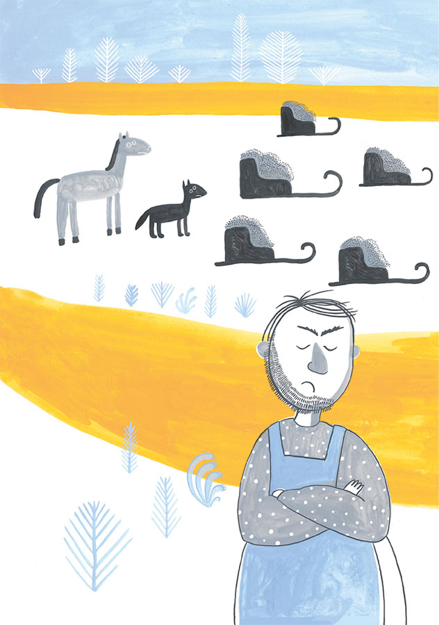 Мельник закрыл сарай снаружи, завалил дверь кучей навоза, чтобы человеческого запаха нельзя было почувствовать (волки, как известно, брезгливые, вони не любят), а сам с лошадью, собакой, кошкой, курами, мышами и невесть откуда свалившейся соседской коровой заперся в амбаре. И не успел он опустить засов, как через ограду во двор хлынули волки.