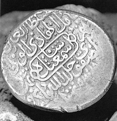 Рис. 16. «Арабский дирхем». Такие монеты ходили на Руси и по всей Великой Империи в XIV–XV веках. Взято из книги «История Москвы. С древнейших времен до наших дней». – Москва, Ин-т российской истории РАН, изд-во объединения «Мосгорархив», 1997 (том 1, с. 12).