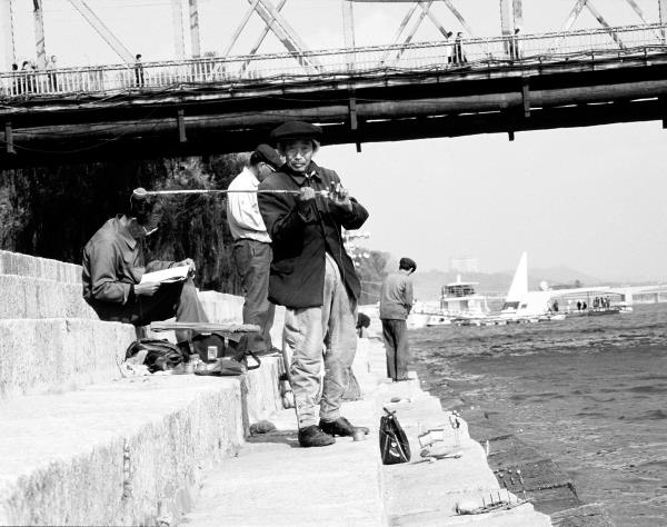 Сразу за мостом я увидел группу стариков весьма преклонного возраста, которые расположились прямо на набережной, выложенной бетонной плиткой. Около них крутился мужчина лет сорока пяти с портфелем из черного кожзаменителя. Он вынимал из портфеля какую-то старую посуду, сделанную, возможно, до освобождения Кореи, с намеком на антиквариат.
