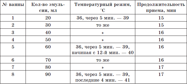 График приема скипидарных ванн с белой эмульсией см. в таблице 8.