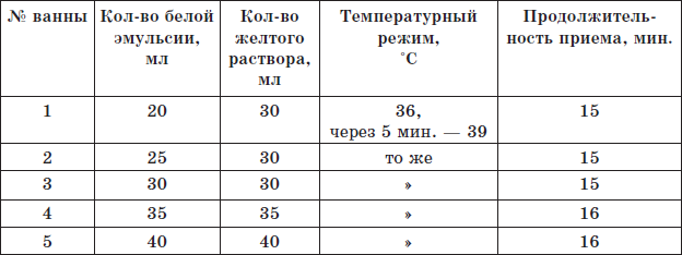 График приема скипидарных ванн с желтым раствором см. в таблице 9.
