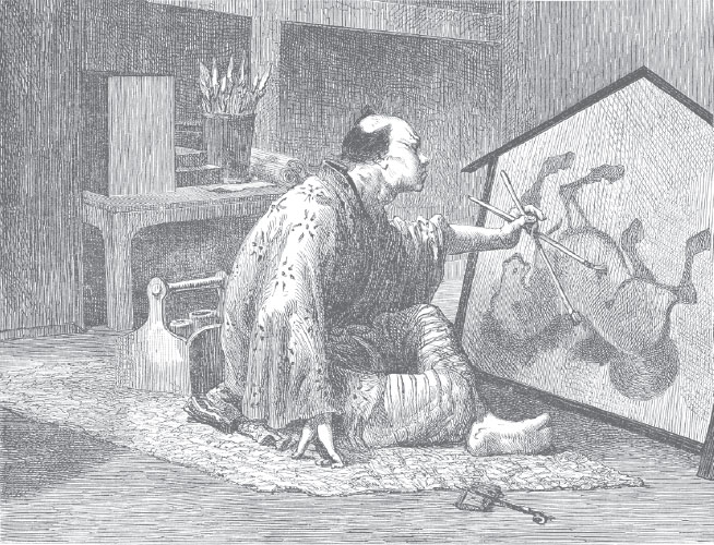 Воды колышущихся рисовых полей, причудливые контуры архипелага, столь благоприятствующие формированию индивидуальности, постоянная игра мягких красок разных сезонов, мерцание серебристого воздуха, зелень расположенных ступенями холмов и голос океана, эхом отражающийся от берегов, опоясанных соснами, – из всего этого и родились та нежная простота, та романтическая чистота, которые смягчают душу японского искусства, что явно отличает его от склонности к монотонной широте китайского художественного творчества, от тенденции к пышности и изобилию искусства Индии. Врожденная любовь к чистоте, которая, хотя иногда и вредит величию, придает ту изысканную отделку нашему промышленному и декоративному искусству, которую, вероятно, никогда не встретишь в художественных произведениях континента.