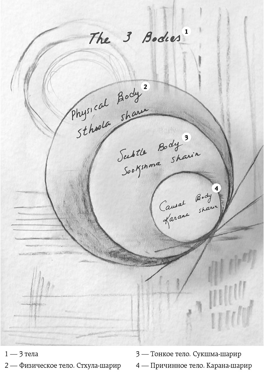 Как насчет свободной воли?Давайте представим, что мы можем создать свое будущее. Возможно ли это во всех аспектах нашей жизни? Мы рассмотрим это более подробно позже, но на данный момент предположим, что у нас есть три тела: физическое тело – стхула-шарир, ум – сукшма-шарир и душа – карана-шарир. И к каждому из них нужен свой подход.