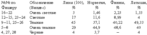 Пигментация финнов, как и их рост и форма головы, обильно документирована. Однако цвет кожи сведен в таблицу только в одном исследовании[648]648