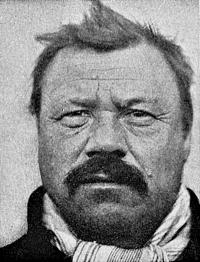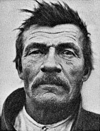 Рис. 1. Швед из Тролльхаттона, южная Швеция. Этот человек очень высок и коренаст, плотного сложения. Его голова значительной длины, его лицо почти такое же широкое, как свод черепа; все размеры лица большие, особенно ширина нижней челюсти; расстояние между глазами, тяжесть надбровных дуг также бросаются в глаза. Этот индивид обобщает, возможно, как и любой другой ныне живущий человек, физический тип охотников, заселявших Западную и Центральную Европу в лауфенский межледниковый период, а также во времена последнего оледенения. Обратите внимание, что в этом случае, как и у большинства индивидов этого типа, пигментация является светлой лишь частично.