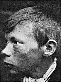 Рис. 5 (фото Мартина Лютера). Этот 18-летний лопарь из Норвегии обладает большинством характерных лицевых черт лопарей: маленькая нижняя челюсть; слабый, вдавленный подбородок; боковое выступание скул; лицевой прогнатизм; вздернутый кончик носа; низкая переносица.
