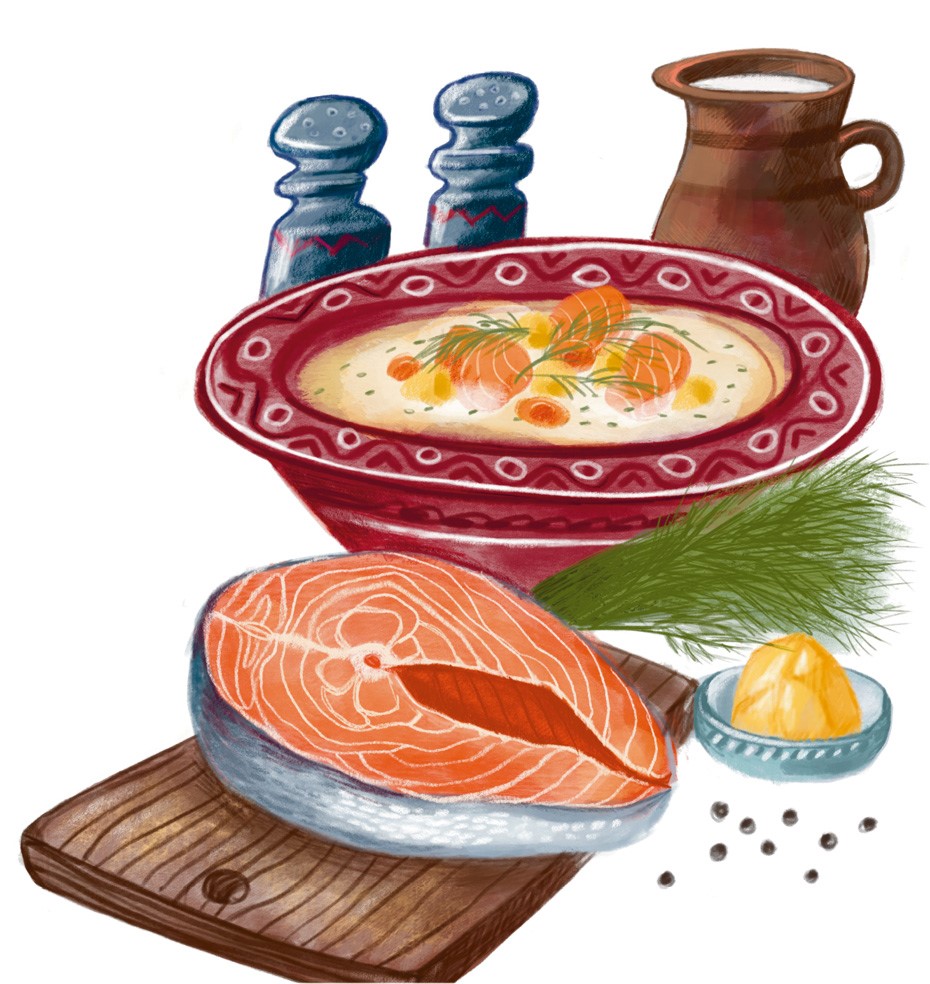 Уверена, в купальне Муми-тролль ел традиционный финский суп из красной рыбы и сливок – лохикейто. На Рождество хозяйки готовят не только эту замечательную уху, но и «рыбного петуха» – так переводится название финского пирога с рыбой – Kalakukko.