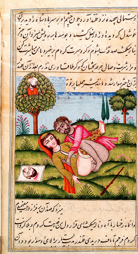 «Лиззат аль-Низа» (Наслаждения женщин). Этот трактат в XIV веке составил персидский врач Зия аль-Дин Накшаби. За основу он взял трактат на санскрите «Ратирахасья» («Тайны любви»), где говорилось о сексе, пище и афродизиаках. Эта иллюстрация взята из манускрипта 1824 года, который ныне хранится в лондонской библиотеке