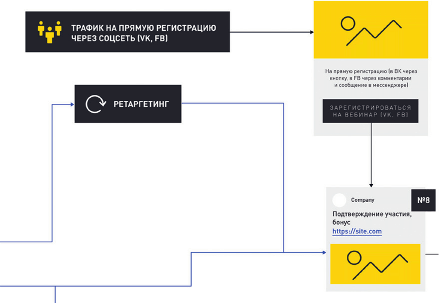 Проводите А/В-тест, делаете две точки входа в автоворонку, с разным посылами для целевой аудитории. Если человек зашел на лендинг и не прошел регистрацию на вебинар, можно догнать его ретаргетингом и предложить регистрацию напрямую через ВКонтакте или Facebook, создав там отдельную аудиторию.
