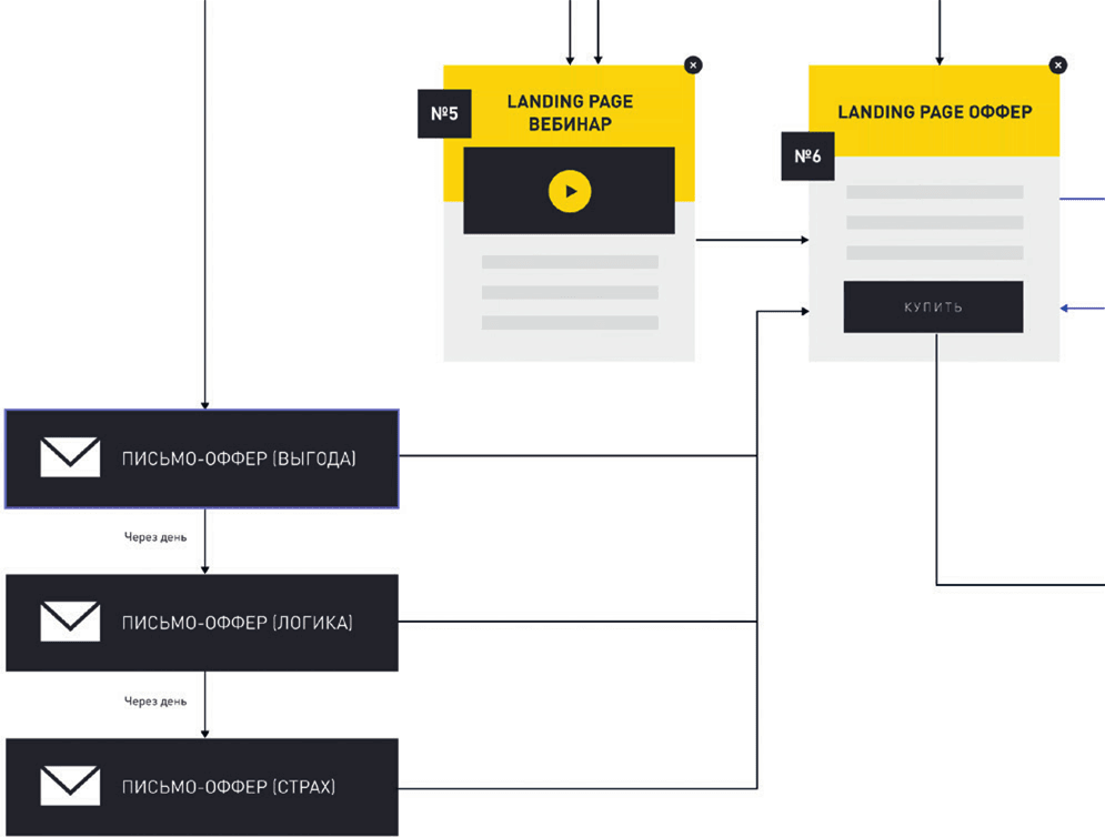 2. Затраты на реализацию будут чрезмерными, а количество прибыли – значительно ниже ожидаемого. Грамотная система строится в виде конструктора: сначала мини-воронка (продали продукт до $10, научились повторять результат), добавили пристройку с продажей передового продукта (точно так же – до стабильно повторяемого результата), добавили следующую пристройку.