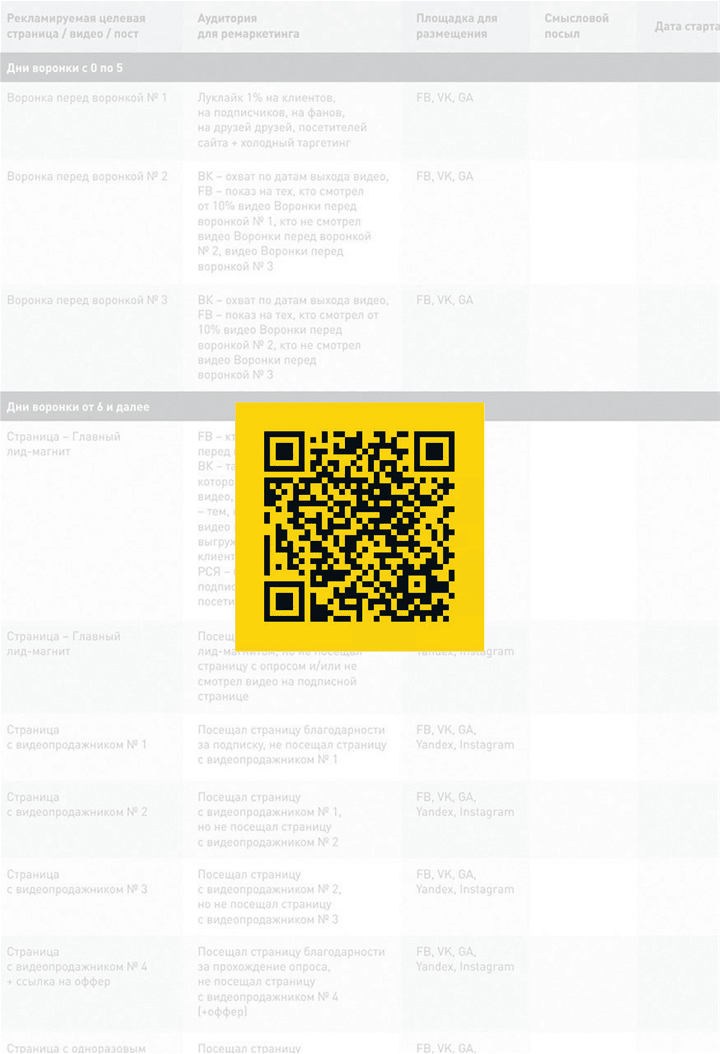 По этому же принципу вы вносите в план последующие дни автоворонки, те материалы, которые рекламируются, и их аудиторию.