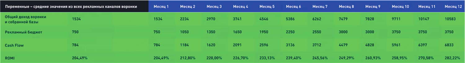 Если взять эту часть автоворонки, то получились следующие итоговые цифры: