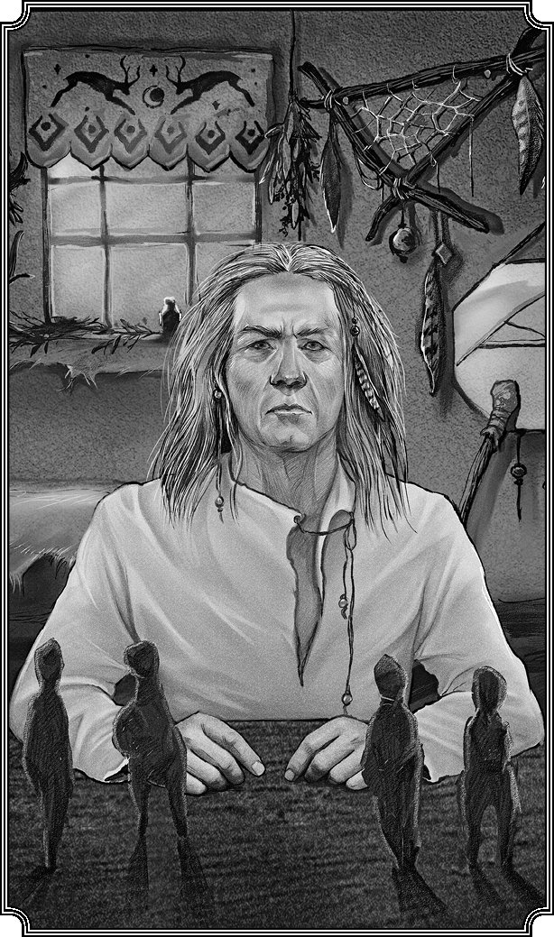 В полутемной комнате пахло сушеными травами, в печке тлели угли. Шаман сидел за столом, глядя на них внимательными глазами. Эргед шагнул к нему и, достав из кармана фигурку, положил перед хозяином дома.