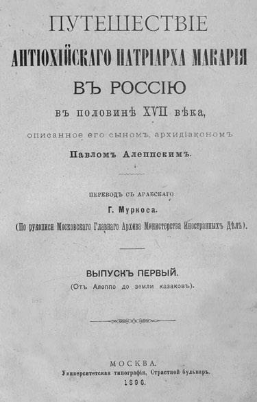 Книга архидиакона Павла Алеппского «Путешествие Антиохийского Патриарха Макария в Россию»
