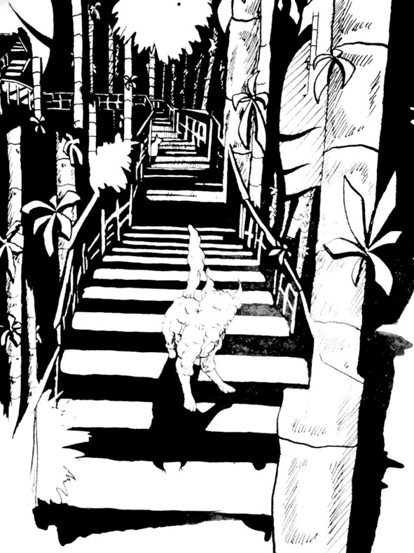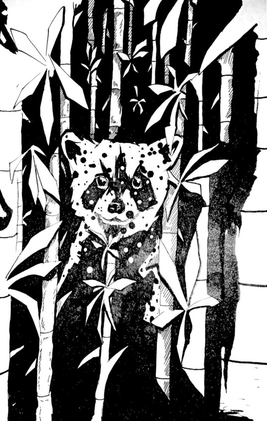 Енот побежал по своим повседневным делам, и мне захотелось спуститься в самый низ, чтобы посмотреть на тех хладнокровных друзей енота, о которых он мне рассказывал. И вот я спускаюсь вниз по ступенькам. Подвесные фонарики освещают мне путь, а прохожие так и не сводят с меня глаз. Я долго думал: что же не так?.. Пока в один прекрасный момент меня не осенило: за весь путь не было ни одного прохожего, который хоть немного был бы похож на меня.
