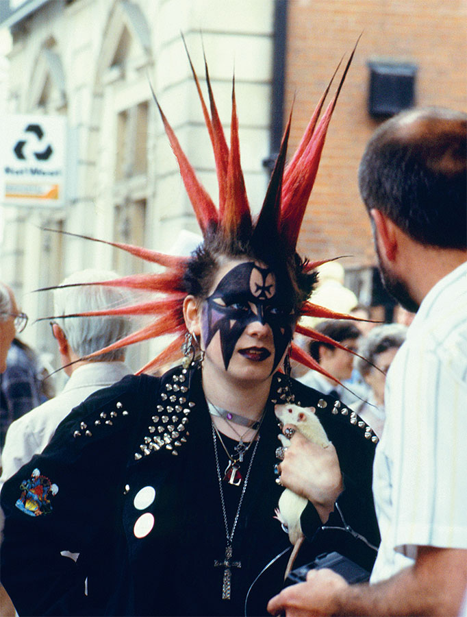 Черная кожаная одежда, символизирующая жесткость и бунтарство, была (и остается) важной частью гардероба панков. На этом фото, сделанном в 1987 году, британский панк запечатлен в лондонском районе Ковент-Гарден.