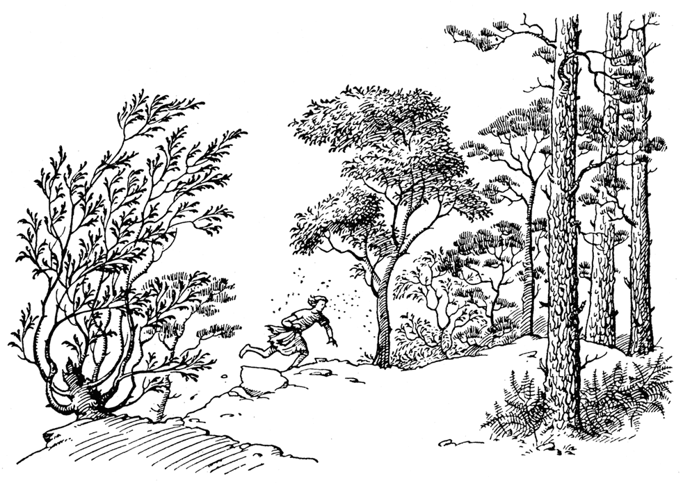Миновав ворота, Шаста побежал дальше: сперва – по траве, потом – по вереску. Он ни о чём не думал и ничего не загадывал, только бежал. Ноги у него подкашивались, в боку сильно кололо, пот заливал лицо, мешая смотреть, а в довершение бед он чуть не вывихнул лодыжку, споткнувшись о камень.