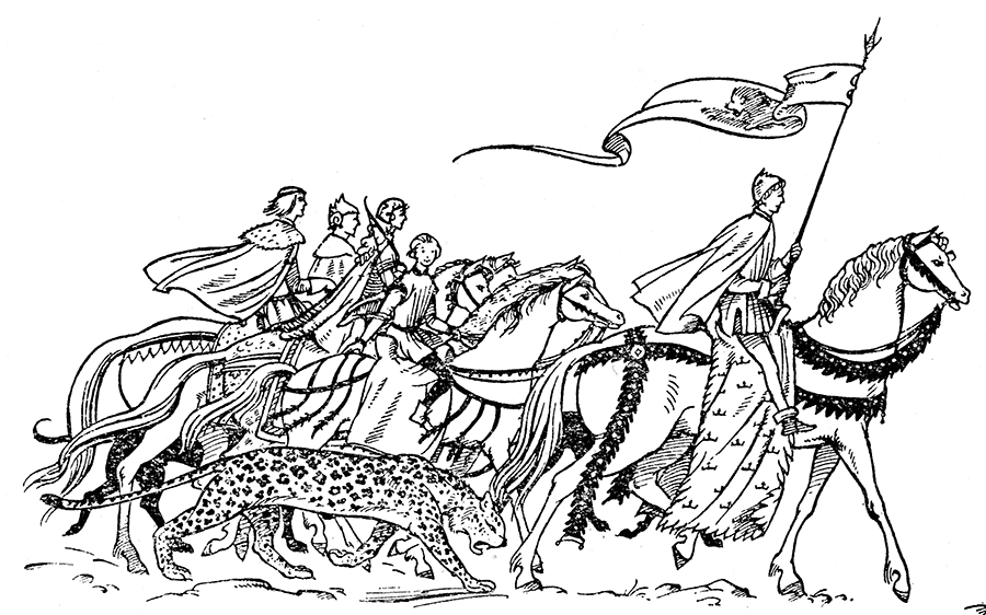 Первым ехал лорд Перидан на гнедом коне, и в руке у него было знамя – алый лев на зелёном поле. Шаста сразу узнал этого льва. За ним следовал король Эдмунд и светловолосая девушка с очень весёлым лицом; на плече у неё был лук, на голове – шлем, у пояса – колчан, полный стрел («Королева Люси», – прошептал Даффл). Дальше на пони ехал принц Корин, а потом – и весь отряд, в котором, кроме людей и говорящих коней, были говорящие псы, кентавры, медведи и шестеро великанов. Да, в Нарнии есть и добрые великаны, только их меньше, чем злых. Шаста понял, что они не враги, но смотреть на них не решился, тут надо привыкнуть.