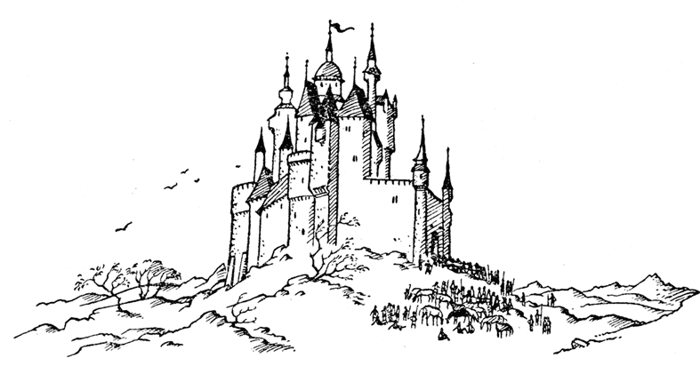Когда они наконец вышли из-под деревьев, то увидели зелёный луг, прикрытый с севера лесистой грядой, и королевский замок, очень старый, сложенный из тёмно-розового камня.