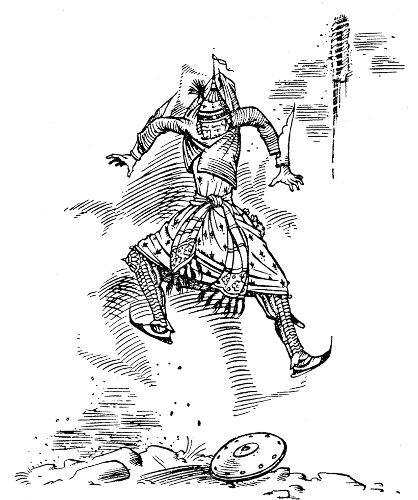 – О бедный, глупый, храбрый мальчик! – воскликнул старец. – Он ничего не умеет, не знает, что делать со щитом. А уж с мечом… Нет, вспомнил! Размахивает во все стороны… чуть не отрубил голову своей лошадке… Ну, меч выбили. Как же его пустили в битву?! Он и пяти минут не продержится. Ах ты, бедняга! Упал.