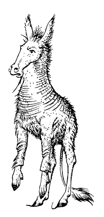 Да и как удержаться от смеха, если уши у пленника, которыми он всё ещё шевелил, стали расти и покрываться серой шёрсткой. Пока все думали, где видели такие уши, Рабадаш уже обзавёлся копытами – и на ногах, и на руках, – а затем хвостом. Глаза стали больше, лицо превратилось в нечто наподобие носа. Он опустился на четвереньки, одежда исчезла, а смешнее (и страшнее) всего было то, что последним его покинул дар речи и он успел лишь отчаянно прокричать: