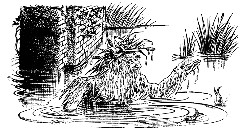 Они свернули немного вправо, пробежали вниз по склону холма и увидели перед собой длинный мост у Беруны. Однако не успели они на него вступить, как из воды поднялась огромная мокрая бородатая голова, много больше человеческой, увенчанная тростником. Голова взглянула на Аслана и пробасила: