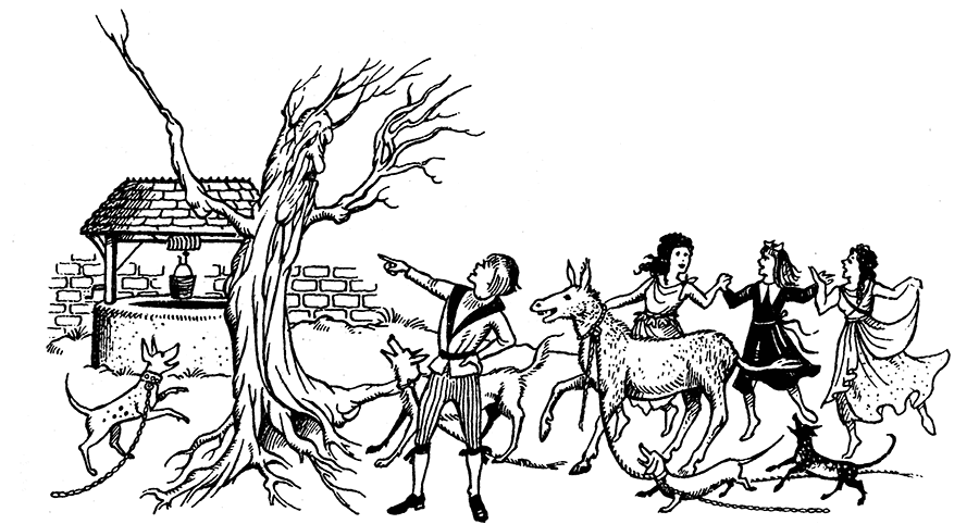 Во дворике за стеной они увидели, как взрослый человек бьёт мальчика, и внезапно палка в его руках превратилась в цветок. Человек попытался его отбросить, но он прирос к руке. Рука превратилась в ветку, тело – в ствол дерева, а ноги стали корнями. Мальчик, который только что плакал, расхохотался и побежал догонять танцующих.
