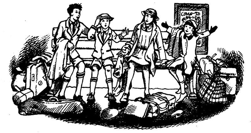 Эдмунда и Люси вовсе не радовала перспектива пожить у дяди Гарольда и тети Альберты, но ничего не поделаешь: их отца пригласили на четыре месяца в Америку читать цикл лекций, и маме пришлось поехать с ним, потому что она десять лет не отдыхала по-настоящему. Питеру предстояло провести каникулы у старого профессора Кёрка, под руководством которого он усердно готовился к экзаменам. Именно в доме профессора эти четверо детей пережили чудесные приключения несколько лет назад, во время войны. Если бы он по-прежнему жил в том же доме, они все могли бы остаться у него, но с тех пор профессор обеднел и жил теперь в небольшом коттедже, где была всего одна гостевая спальня. Взять остальных детей в Америку было слишком дорого, поэтому с родителями поехала только Сьюзен.