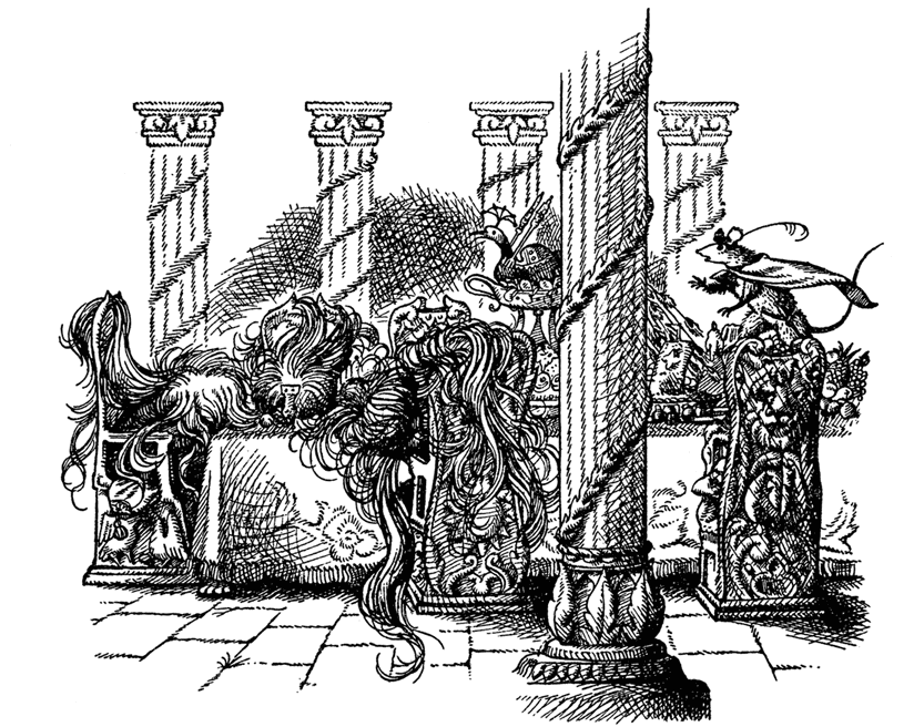 Каспиан выполнил просьбу, и мышиный рыцарь, вытянувшись на столе по стойке «смирно», поднял крошечными лапками золотой бокал и провозгласил: