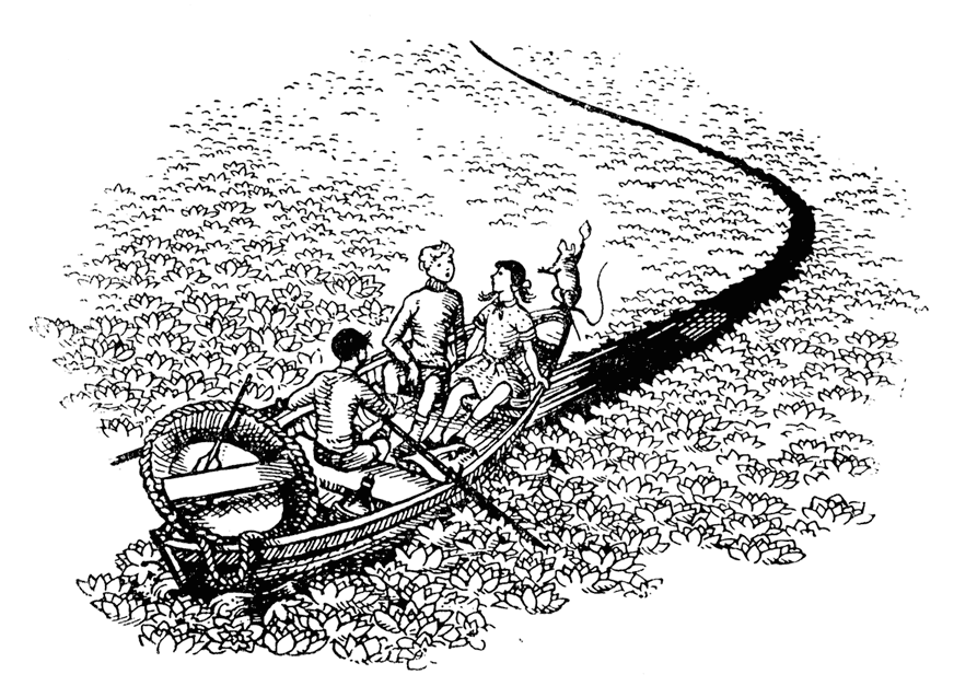 – Смотрите! – воскликнула Люси, сидевшая на корме шлюпки, и подняла вверх охапку влажных белых цветов с широкими плоскими листьями.